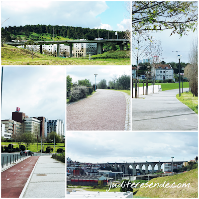 Começamos a avistar a cidade, mas mais proximamente o jardim Amália Rodrigues, com os seus espaços verdes românticos e rodeados de uma obra simples e fantástica que nos trás a frescura para um jardim de água.
